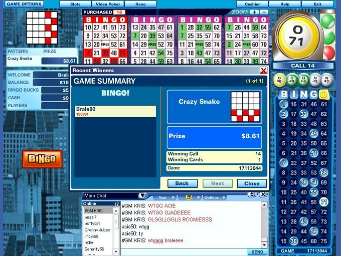 I needed to take a break so I went out and I breathed in some fresh air to clear my head. After 15 minutes, full of hope, I started playing again. In the first game I played after the break, I won. I played with 48 cards, the pattern was a Broken Frame and I won $5.78. Maybe it was because the weather was really hot, but I really got tired easily so I decided to play one more game and then call it a day. In the last game the pattern was a Crazy Snake and the prize was $8.61; I needed just five numbers to cover the pattern and I covered it within the next six numbers. I was very excited because I had never won so easily.