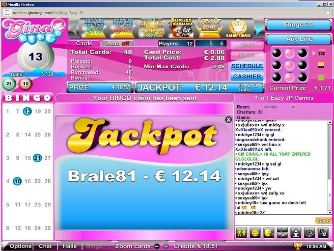 I like to go back to the sites where I had a nice experience and one of those sites is certainly Gina Bingo. Even though I didn’t have some big wins, I had a few smaller ones so along with a good atmosphere I felt there I decided to go back. Without much thinking I entered Club 75 Hall. In the first few games I played I didn’t have much luck; but then in the third one I managed to cover a letter J pattern but unfortunately I had to share my winning so I got €2.25. I stayed in the same hall and in the next few games I was really close to winning; I had to cover a small box and a wine glass patters but in both games I had two cards with two more numbers to go. I decided to keep playing in the same room because it was very interesting and the games were changing rapidly; there was no place for a rest.
