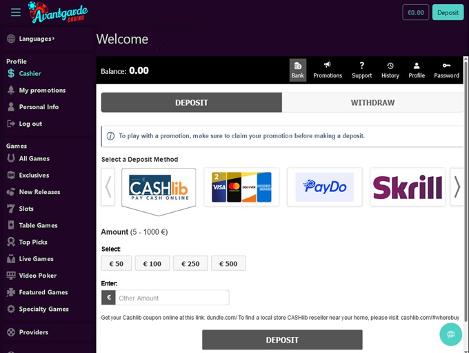 Avantgarde Casino offers one of the most simple sign-up processes around. It's just a matter of providing the casino with some basic info.